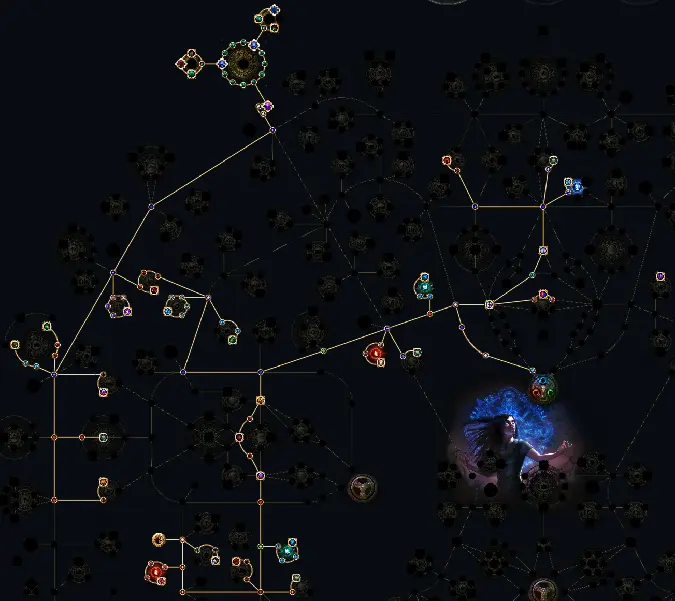 PASSIVE TREE & POB PASTEBIN ![]() ![]() POB PASTEBIN https://pastebin.com/9Ke2F99B ![]() NOTES ![]() • Safeguard anointment • Sovereignty cluster • several masteries • 2 extra passive points from killing all bandits ![]() MASTERIES ![]() • Life: +50 maximum Life • Life: 10% increased maximum Life • Mana: 15% increased mana reservation efficiency • Staff: Recover 2% of life/ES when block ![]() CLUSTER JEWELS ![]() • 2x Large: 8-12 points. Small passives have increased effect. Call to the Slaughter. • 1x Medium: 4/5 points. Blessed Rebirth • 1x Small: Fortress Covenant • 1x Small: Surging Vitality • 1x Small: Enduring Composure • 1x Small: Ghastly Eye ![]() JEWELS ![]() • Ghastly Eyes ![]() ASCENDANCY ![]() 1. Malediction 2. Profane Bloom 3. Void Beacon 4. Withering Prescence Note: Withering Prescence is for 60% chaos res. If you can get chaos res somewhere else, use Frigid Wake instead! ![]() PANTHEON ![]() Major: Lunaris Minor: Shakari ![]()