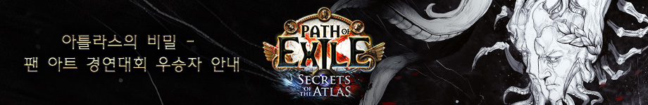 이번 공모전에는 150명이 넘는 유배자 분들이 신규 확장팩 아틀라스의 비밀과 그 콘텐츠에서 영감을 받은 작품들을 출품해 주셨습니다. 저희는 아트팀의 도움을 받아 수상작을 선정하였으며, 이제 그 결과를 발표합니다! 작품을 출품해 주신 모든 분들께 감사드리며, 모든 수상자 분들께 진심으로 축하의 말씀을 드립니다! 곧 보상 지급 관련 안내를 위해 개별 연락을 드릴 예정인 점 참고 부탁드립니다. 아울러, 아쉽게 본상에는 들지 못했지만 뛰어난 작품을 제출해 주신 참가자분들께는 이번 주 추가 공지를 통해 장려상을 발표할 예정입니다. 1위 ~ 3위
