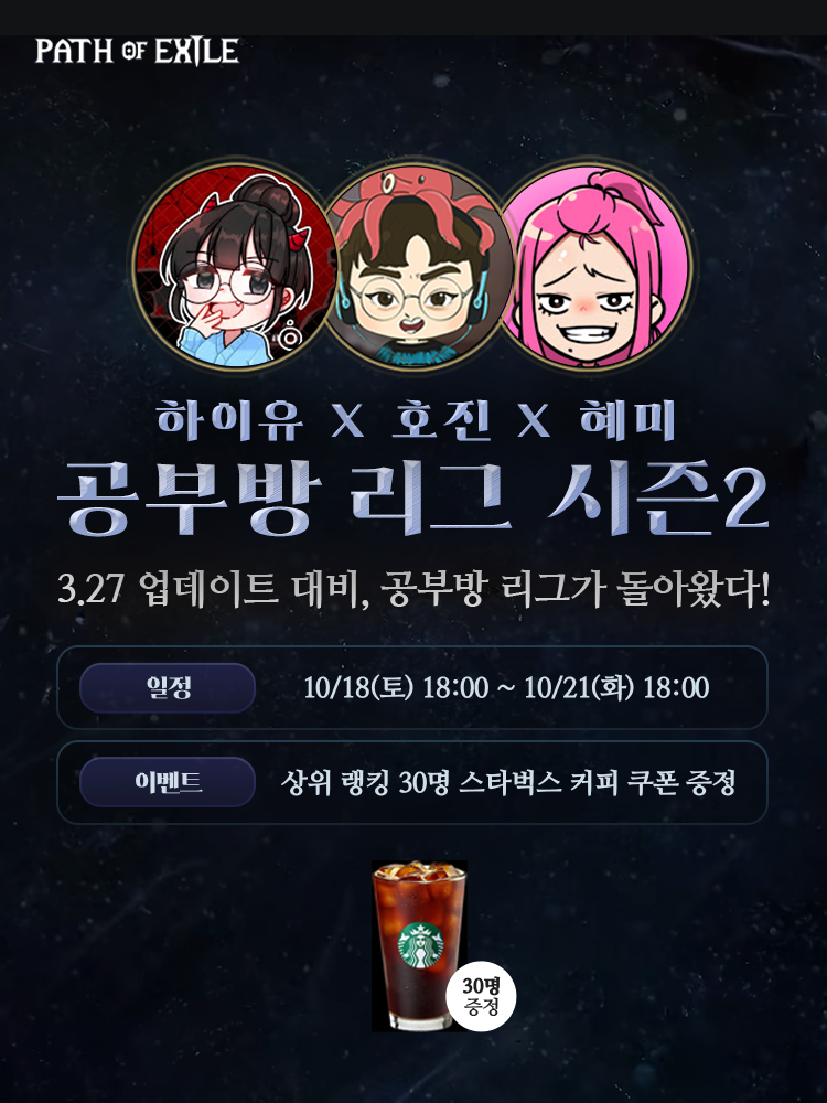 혜미가 함께하는 패스 오브 엑자일: 공부방 리그 시즌 2에 대해 안내 드립니다.